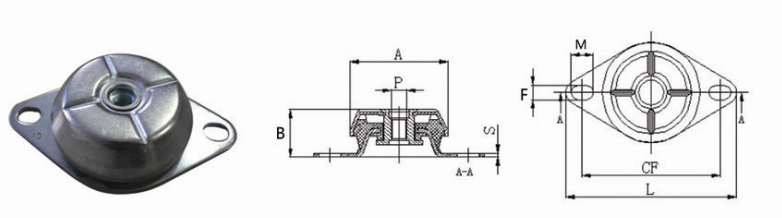型號 橡膠硬度 IRHD (daN/mm) A B P F*M CF L S Average Stiffness平均值負荷(Kg/mm) Max Load最大荷重(Kg) Max Deflec.最大壓縮量(mm)