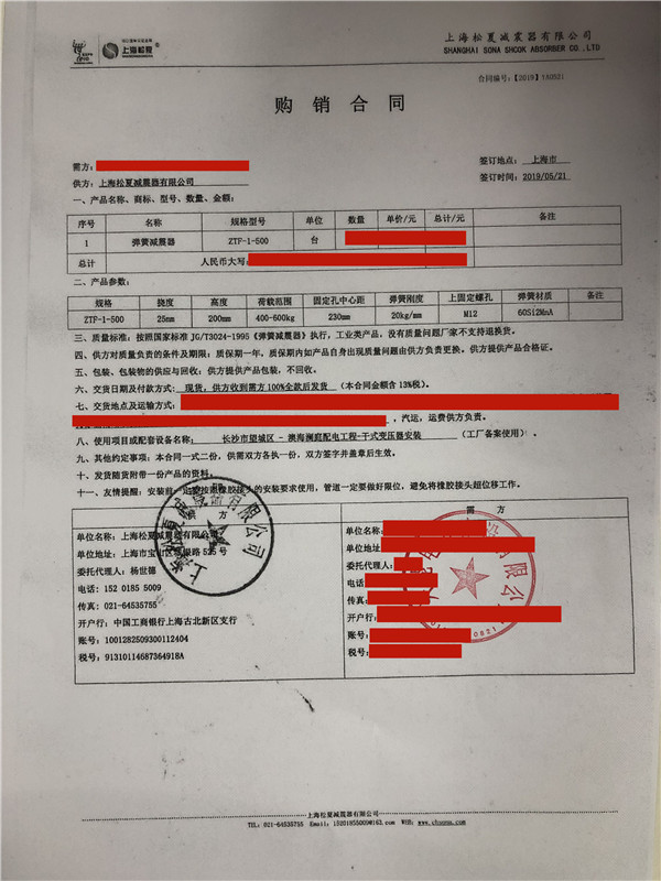 二、長沙市望城區(qū)澳海瀾庭配電工程干式變壓器安裝項目-彈簧減震器銷售合同